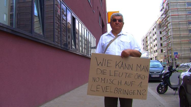 Welches war die wichtigste Frage, mit der man sich beschäftigt hat, als man 16 Jahre alt war? Für „16+“ befragte Anna Witt dazu PassantInnen und lud sie ein, ihre Frage von damals auf ein Pappschild zu schreiben. Im Video sieht man die Befragten mit ihren Schildern einige Zeit vor der Kamera posieren. Zugleich hört man auf der Ton- Ebene die Stimmen von heute 16-jährigen beim Versuch, diese Fragen konkret zu beantworten.
