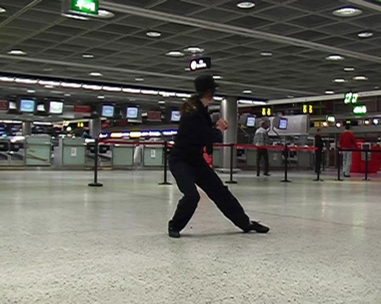 In “Field Test” Witt patroled the Dublin Airport. Some people were waiting for their flights and perhaps they could see an unexpected movement in the corner of their eye, while the artist practiced action stunts for the ‘big mission’. In her performance she played the role of a narrative figure, a heroic security guard who is taking his job a little bit too serious. Not knowing where the danger is coming from; she, as the Guard, is trying to fight against an invisible danger in the style of an action hero, but there is in addition always the underlying gesture of failure, boredom and insecurity.