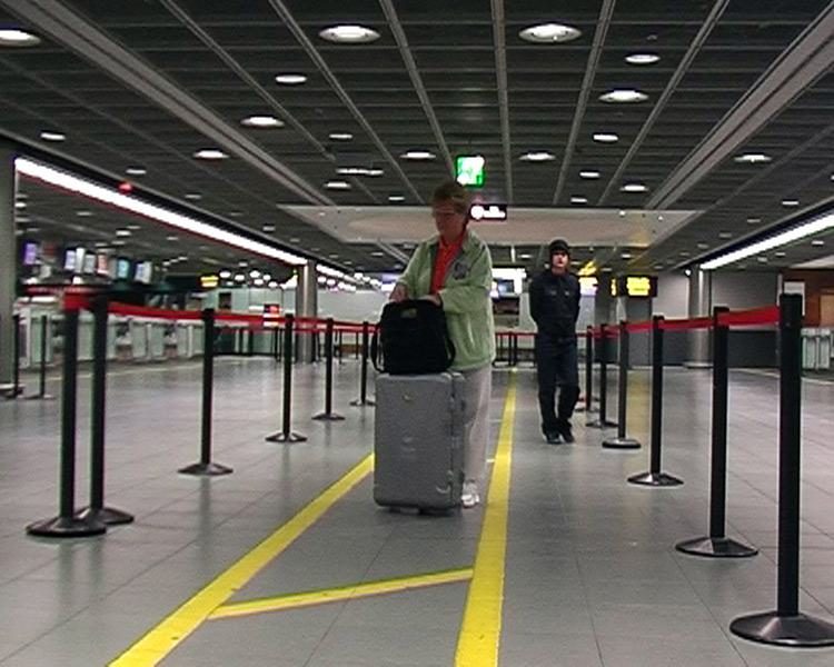 In “Field Test” Witt patroled the Dublin Airport. Some people were waiting for their flights and perhaps they could see an unexpected movement in the corner of their eye, while the artist practiced action stunts for the ‘big mission’. In her performance she played the role of a narrative figure, a heroic security guard who is taking his job a little bit too serious. Not knowing where the danger is coming from; she, as the Guard, is trying to fight against an invisible danger in the style of an action hero, but there is in addition always the underlying gesture of failure, boredom and insecurity.