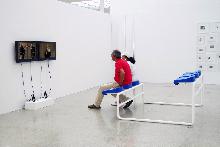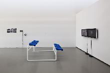 2-channel HD-video, 13 min, grandstand object, small LCD monitor, 6 black and white copies, 2010