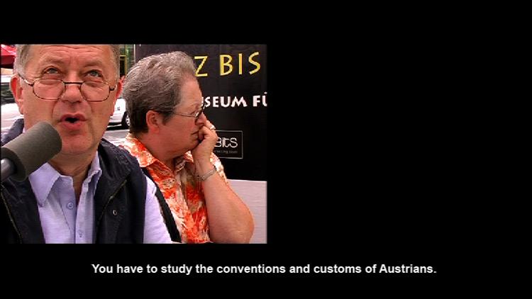 The title “Even though the food is pure Austrian, the people in the kitchen are themselves international” is a quote from a report the Austrian ministry for national defense wrote about integration in the Austrian army. Adaption or rather subordination are operative principles in the army. The function of military camouflage is to adapt to the natural surroundings and to become invisible. A corresponding civil demand is that minorities have to adapt to the majority. In a two-channel video the military strategies of the army are opposed to the model of social integration.