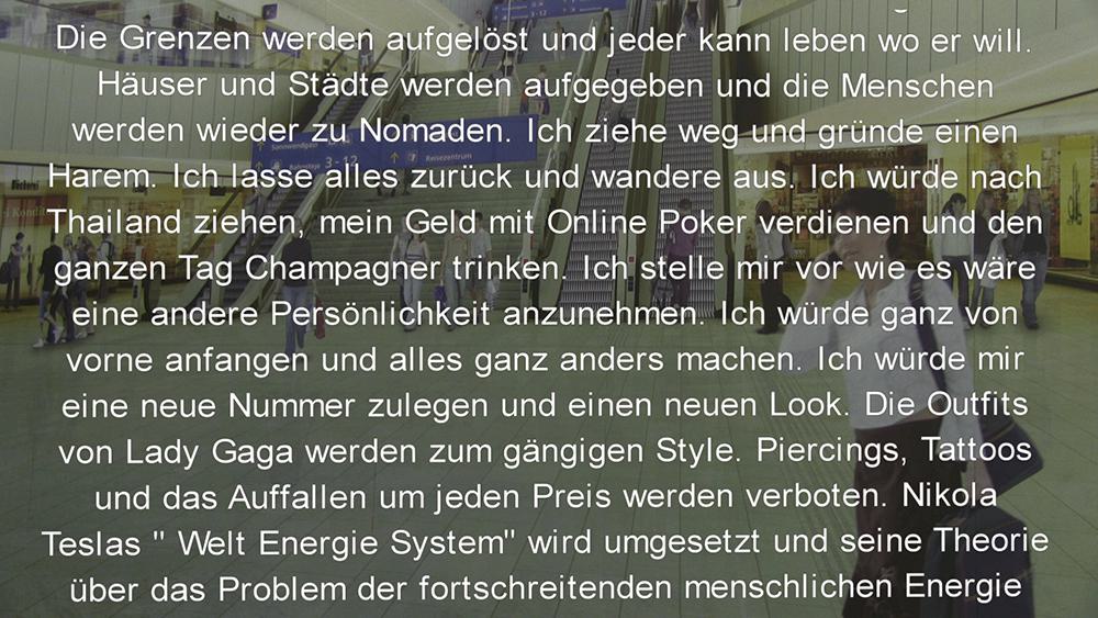In Radical Thinking – Central Station Vienna, the artist portraited travelers and commuter at the newly built central station, while they where asked to focus for a moment and imagine ideas they consider a radical agenda of either private or political matter. The ideas were anonymously written down afterwards and set together to a manifest.