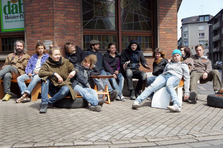 For the Emscherkunst, an public art event in the Rhine - Ruhr metropolitan, from June to October 2013, a performance took place in Duisburg Marxloh. The performers, a group of experienced crafts people from the region, worked in public space to build new street furniture out of found rubbish. The objects were created in the streets of suburban Marxloh. There, they were also left, free to use for the residents.