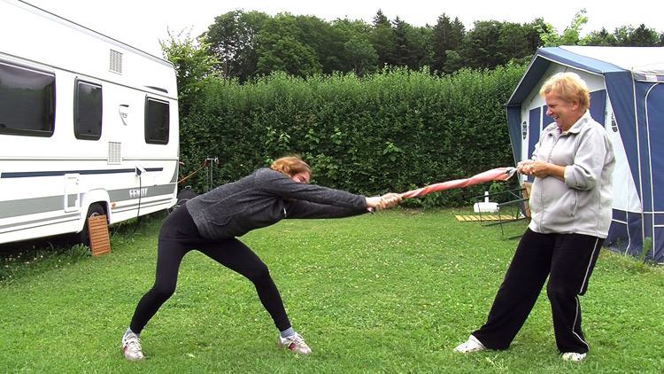 Wie identifiziert sich der Einzelne mit der Konstruktion des Staates? Wie entsteht ein Wir-Gefühl? Was ist mit der Geschichte? Wie wirkt sich die politische Lage auf das Nationalgefühl aus? Ausgehend von der Frage wie sich nationale Zugehörigkeit manifestiert, untersuchte ich im Mikrokosmos Campingplatz das Phänomen des sich "schmücken mit Nationalflagge". Im Laufe der Untersuchung zeigte sich dass die meisten keinen genauen Standpunkt dazu haben. "Es hat einfach mal einer mit den Flaggen angefangen". Ich entschloss, die Auseinandersetzung selbst zu thematisieren und forderte die Camper, unter Einsatz ihrer Fahne, zu einem sportlichen Wettkampf auf.