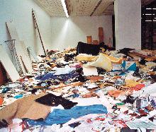 400 Euros were hidden in an installation which looked like an ordinary living room. The visitors were invited to look for the money regardeless of damage to the installation. If the money was found, it could be kept. The visitors formed the aesthetic process of the installation and became an active part of it. Emotionally, a precarious situation developed. Three hours after the opening the installation was totally destroyed and most of the money was found. Due to the location of the gallery, a much used subway station, the usual gallery guests mixed with people of different milieus. The apprehension at the beginning changed into a joyfull process of destruction. In 2008 the video “To find money” was made from the documentary material, which is not in chronological order. Its focus is the powerful atmosphere in the process of searching and destroying.