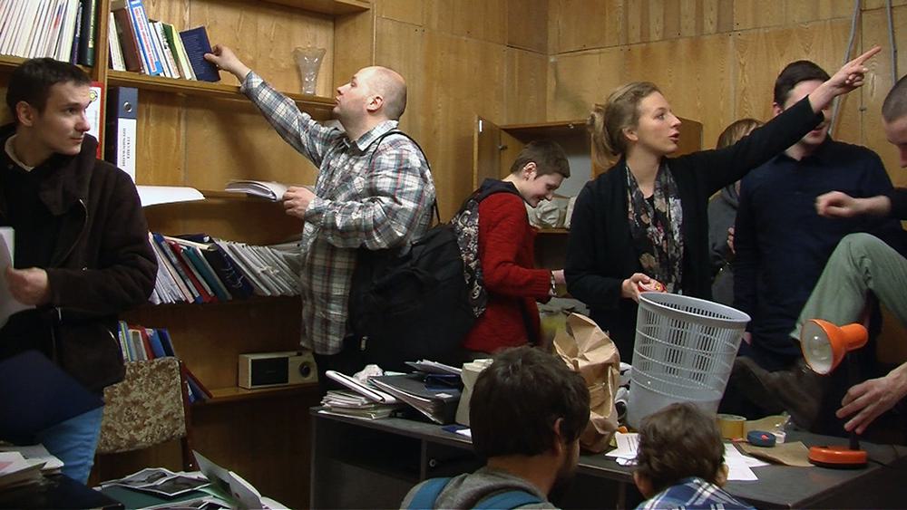 The installation represented an office in a post-Soviet administrative institution where 15,000 Rubels have been hidden. Viewers were invited to hunt for the money, without worrying about disturbing anything. They could keep whatever money they found. Viewers were thus actively engaged in the creation of a work whose development was unpredictable.