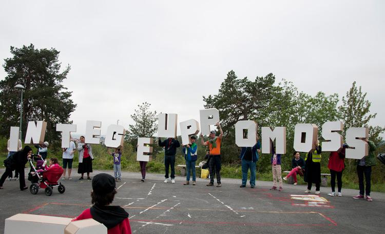 The project is connected to the idea of creating a platform for reflection in the form of a text. During a couple of weeks Anna Witt spent time in Hallonbergen, a sattelite town of Stockholm, speaking with people about their living conditions. After a while the conversations were extended to both a larger political context and to a possible future. Her response to these conversations has been formulated in a manifesto. Manifestoes are historically connected to a certain cultural scene or to a political agenda whereas the Hallonbergen manifesto voices a multitude of perspectives and levels. Concrete topics in Hallonbergen, private matters and global concerns face each other and create a private but at the same universal future agenda. Through the annotation like language, the address of the manifesto remains open. During the parade the manifesto was carried through the streets in a public performance that took the form of a choreography where participants where holding up sculptural letters. People gathered in different ways to formulate sentences so that the whole manifesto was delivered in parts as the parade moved through Hallonbergen.