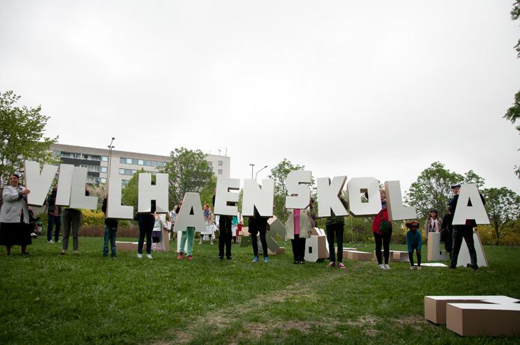 The project is connected to the idea of creating a platform for reflection in the form of a text. During a couple of weeks Anna Witt spent time in Hallonbergen, a sattelite town of Stockholm, speaking with people about their living conditions. After a while the conversations were extended to both a larger political context and to a possible future. Her response to these conversations has been formulated in a manifesto. Manifestoes are historically connected to a certain cultural scene or to a political agenda whereas the Hallonbergen manifesto voices a multitude of perspectives and levels. Concrete topics in Hallonbergen, private matters and global concerns face each other and create a private but at the same universal future agenda. Through the annotation like language, the address of the manifesto remains open. During the parade the manifesto was carried through the streets in a public performance that took the form of a choreography where participants where holding up sculptural letters. People gathered in different ways to formulate sentences so that the whole manifesto was delivered in parts as the parade moved through Hallonbergen.