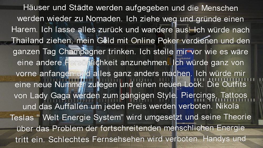 In Radical Thinking – Central Station Vienna, the artist portraited travelers and commuter at the newly built central station, while they where asked to focus for a moment and imagine ideas they consider a radical agenda of either private or political matter. The ideas were anonymously written down afterwards and set together to a manifest.