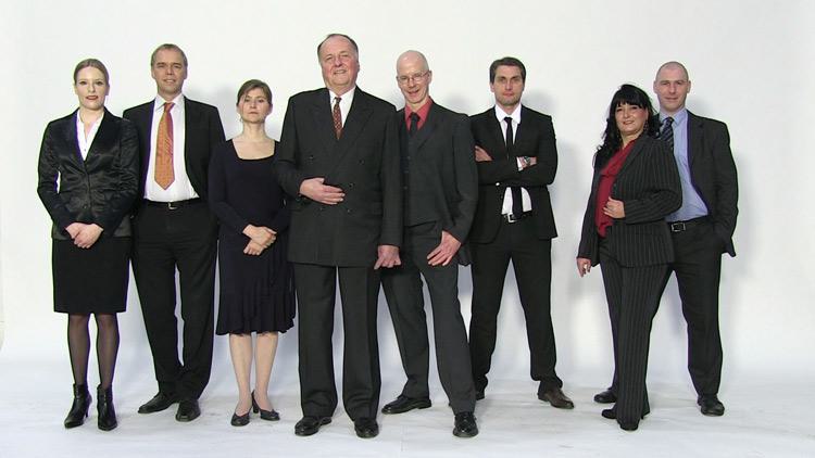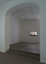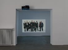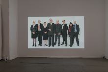 Sixty Minutes Smiling shows a group of officially dressed men and women standing in front of a neutral background. The persons could belong to the executive management of a company. Statically posing they look with a constant smile into the camera during the entire 60 minutes. Formally the work relates to Gillian Waering’s Sixty Minutes of Silence. However Witt is less interested in the dynamics within the group but in the emotional dynamics of each single person. In the second video channel Witt focuses on the facial expression of the protagonists. Hardly noticeable in the group image details and emotions become now apparent.