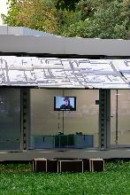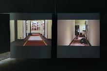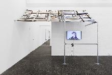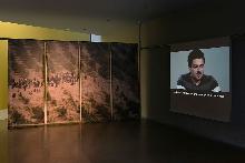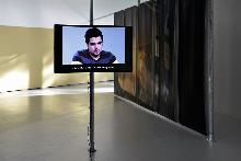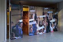 WALKING THROUGH WALLS-Part 1 includes a video of the first meeting of the two persons, in which they took protocol of each other`s story in a neutral, almost bureaucratic way. Both stories are told alternately at the same time and seem to blur into each other, as the speakers sometimes switch from their own story to the story of the other. The video is shown within a flexible pole construction and a selection of media images chosen by the protagonist.